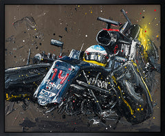 Paul Oz is an explosive British portrait artist and official Formula One artist– focused on the maximum 3D impact and energy in thick oil paint. Well known for travelling the world live painting with Formula One – recently Paul has also created work with Team Sky on the Tour of Britain, Chelsea FC to celebrate their 2017 title win, and for Lamborghini at the launch of their Urus.