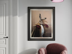Males box each other to gain dominance and Marciano (as I started to call him) was a real champ. He was 5 and 0 last Spring and undefeated. He was much bigger than the other hares here on the farm and sometimes just stood up in the middle of the field, bold as brass even as Obi and I approached him as if mimicking DeNiro in Taxi driver - ‘you looking at me?’ - I tried to capture ‘that look’ in his portrait - that kind of ‘who’s next?’ attitude" - Angus