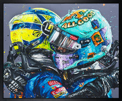 Paul Oz is an explosive British portrait artist and official Formula One artist– focused on the maximum 3D impact and energy in thick oil paint. Well known for travelling the world live painting with Formula One – recently Paul has also created work with Team Sky on the Tour of Britain, Chelsea FC to celebrate their 2017 title win, and for Lamborghini at the launch of their Urus.