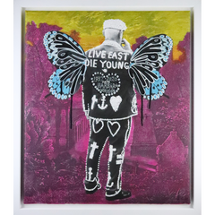 PEARLY KING IN BERMONDSEY CEMETARY Purple and Yellow Hand Embellished Canvas by Pure Evil