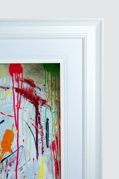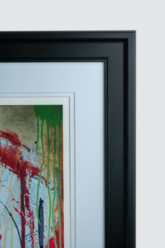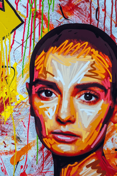 A powerful, head on portrait bursting with colour and intensity. Stripped back and striking, Sinead confronts the viewer with raw emotion and unwavering focus. Every line and drip pulses with energy, making it one of Jake’s most commanding works to date.