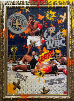 Born in 1989, Hue Folk is heavily influenced by the pop culture of his era, creatively using bold colours, iconic images, cartoons and fashion design. His fascination with vibrant colour is an element that carries across all his original mixed media works.