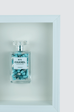 Chanel No.5 Capsules - (White Frame / Blue Pills) by Emma Gibbons
