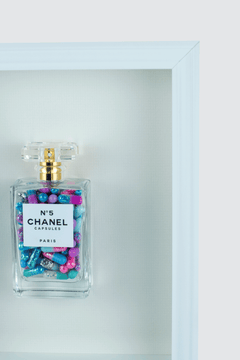 Chanel No.5 Capsules - (White Frame / Blue, Purple Pills) by Emma Gibbons