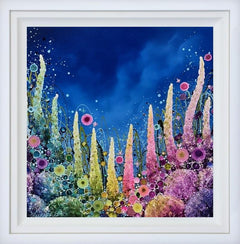 All of Leanne's paintings are predominately oil, embellished with glitter, jewels and metal leaf. These unique paintings, regardless of whether they are flowerscapes, seascapes, waterscapes or moorlands, are textured with an almost three dimensional feel. Depending on the time of day or year, the light plays a magical part in making the paintings come to life.