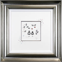 Having begun her career indulging in strong abstract pieces, dripping with colour and energy – her now signature move towards 3D elements began in 2006. The handmade elements that include glass, diamond dust, Swarovski crystals and finished by the artist herself in resin have become a much-loved fixture within her work.