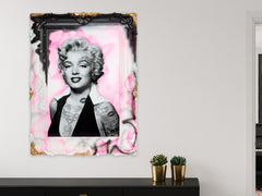 Unapologetically bold, their mixed media artworks are uniquely embellished and finished with a bespoke spray paint frame.