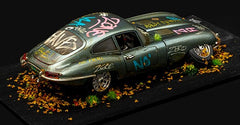 Hand Painted & Embellished, Die-Cast 1:18 Scale Model. 1/1 Bespoke and Original display artwork. Graffiti'd and presented as a diorama, with imitation flora & fauna - plus additional elements. Vehicle is fixed to handmade plywood timber base - painted and textured as imitation asphalt.