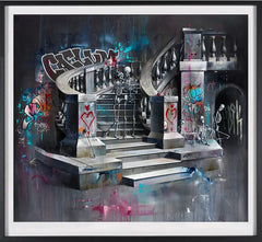 Tommy's paintings are a collection of forms put in place to create a sensation based around a subject; they do not always carry a direct meaning though possess a weighty essence of concept. Tommy sees them as musical scores, the instruments of the orchestra are played in such a way as to stir emotions at the will of the composer. Though above all they are paintings, they are about paint, its nature and how one can define forms and illusion, a fine direct medium for filling my primal needs.