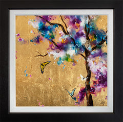 Hand Painted Original Artwork - Oil Painting Medium with 18crt Metallic Gold Foil Leaf Background, presented on primered artist board - Lacquered with UV protective varnish. Framed in double rim - with a white inner and contemporary black square edge moulding profiles.