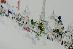 Inspired by the brilliance of travelling to Paris from London in only a few hours and being able to step foot into a completely different city with a totally different feel with something she strongly wanted to capture. Seeing the similarities and differences between these equally historical and beautifully chic cities side by side makes a beautiful illustration.