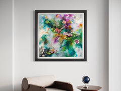 Hand Painted Original Artwork - Oil Painting Medium, presented on primered artist board - Lacquered with UV protective varnish. Framed in double rim - with a white inner and contemporary black square edge moulding profiles.
