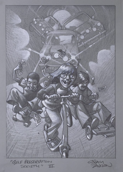 Craig Davison – As he rode his bike across the famous steel city of Sheffield in the early 1970’s, Craig Davison could not have predicted the impact these care free days would have upon his career some 40 years later. With the adventures and escapades of a youth well (miss)pent coming to a close and the nearly endless summer holidays leaving only the very best memories in its place, the line towards becoming one of the UK’s best selling fine artists was anything but a straight one. Inspired by the comic book artistry of Mike Mignola, the simplistic still characters of Yoshitomo Nara, the energy of Goya and the superb illustrations of N.C Wyeth, Craig is immensely proud to be able to present nostalgia in painted form to collectors all over Europe and the World.