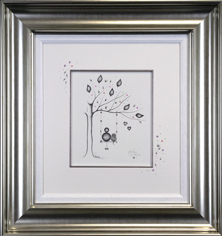 Having begun her career indulging in strong abstract pieces, dripping with colour and energy – her now signature move towards 3D elements began in 2006. The handmade elements that include glass, diamond dust, Swarovski crystals and finished by the artist herself in resin have become a much-loved fixture within her work.