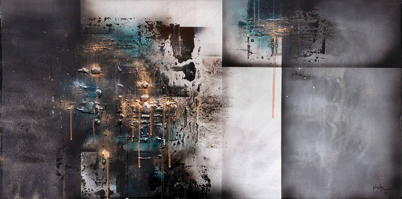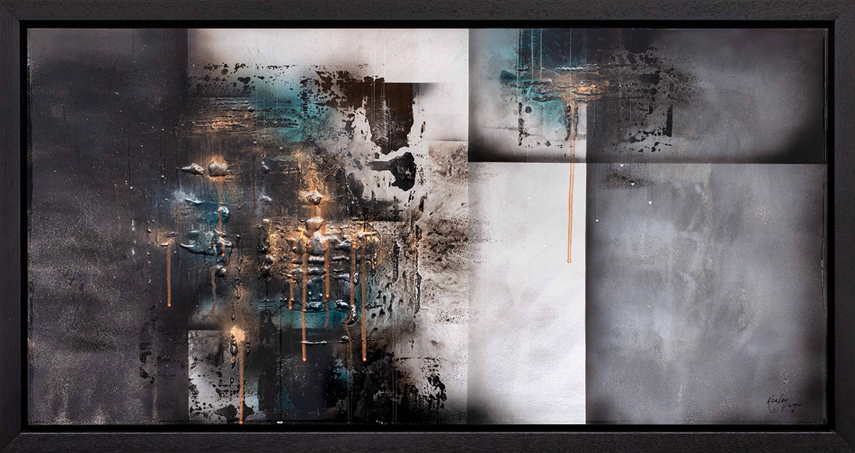 Having begun her career indulging in strong abstract pieces, dripping with colour and energy – her now signature move towards 3D elements began in 2006. The handmade elements that include glass, diamond dust, Swarovski crystals and finished by the artist herself in resin have become a much-loved fixture within her work.