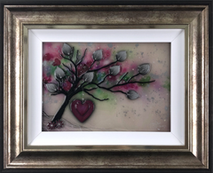 Having begun her career indulging in strong abstract pieces, dripping with colour and energy – her now signature move towards 3D elements began in 2006. The handmade elements that include glass, diamond dust, Swarovski crystals and finished by the artist herself in resin have become a much-loved fixture within her work.
