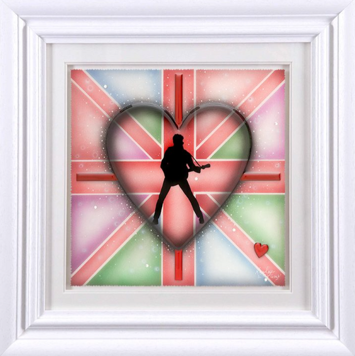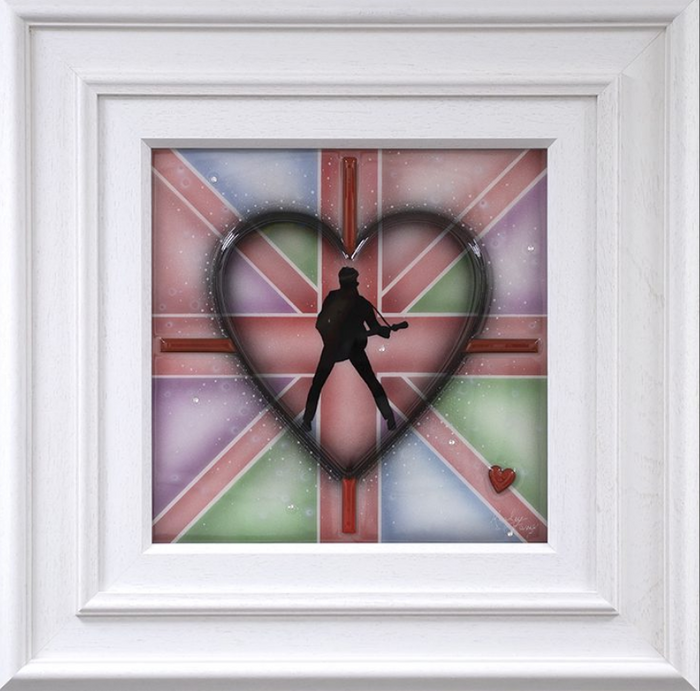 Having begun her career indulging in strong abstract pieces, dripping with colour and energy – her now signature move towards 3D elements began in 2006. The handmade elements that include glass, diamond dust, Swarovski crystals and finished by the artist herself in resin have become a much-loved fixture within her work