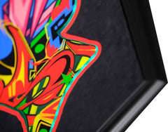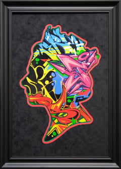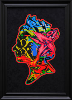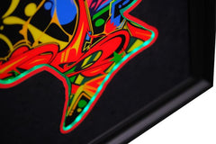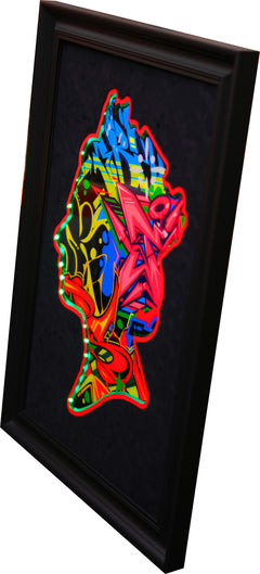 Bespoke Queen framed in black suede mount, using high quality Italian moulding. LED mood lights with a remote control included. God Save the Queen will light up any room.