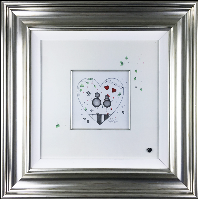 Having begun her career indulging in strong abstract pieces, dripping with colour and energy – her now signature move towards 3D elements began in 2006. The handmade elements that include glass, diamond dust, Swarovski crystals and finished by the artist herself in resin have become a much-loved fixture within her work.
