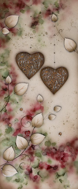 Having begun her career indulging in strong abstract pieces, dripping with colour and energy – her now signature move towards 3D elements began in 2006. The handmade elements that include glass, diamond dust, Swarovski crystals and finished by the artist herself in resin have become a much-loved fixture within her work.