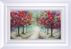 Having begun her career indulging in strong abstract pieces, dripping with colour and energy – her now signature move towards 3D elements began in 2006. The handmade elements that include glass, diamond dust, Swarovski crystals and finished by the artist herself in resin have become a much-loved fixture within her work.