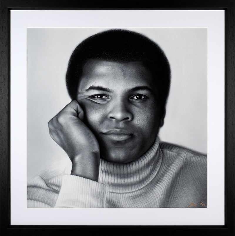 Signed by the artist, this unique piece is perfect for collectors and boxing enthusiasts alike, celebrating the enduring legacy of "The Greatest" in a timeless work of art.