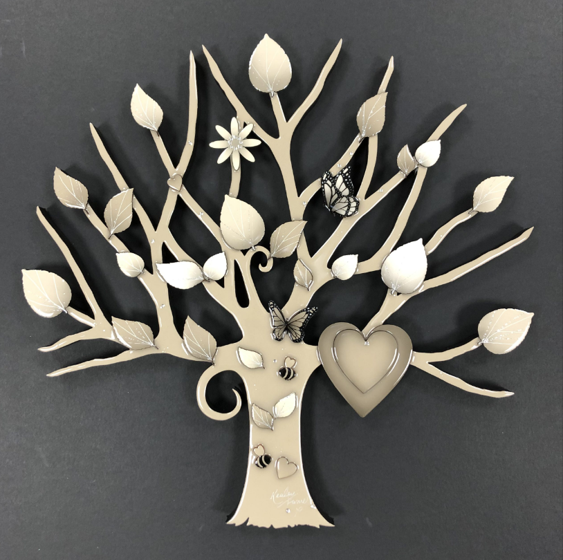 Having begun her career indulging in strong abstract pieces, dripping with colour and energy – her now signature move towards 3D elements began in 2006. The handmade elements that include glass, diamond dust, Swarovski crystals and finished by the artist herself in resin have become a much-loved fixture within her work.
