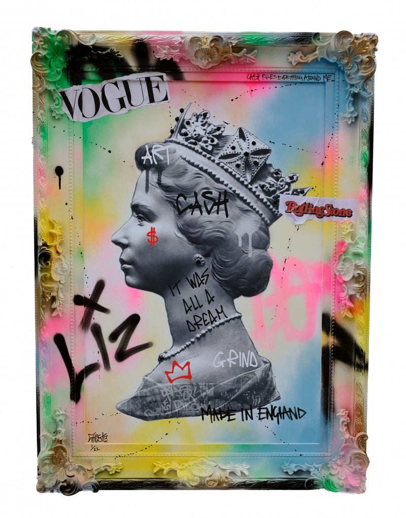Ghost focuses on transforming the viewers perspective on an icon or character and reconstructs their subject by manipulating, embellishing and altering the images. Using digital methods and street art as a source of inspiration, Ghosts’ artworks are a nod to the anti-establishment. Inspired by the emotive response of street art, Ghost set out to create unique pieces which celebrate the diversity of urban art.