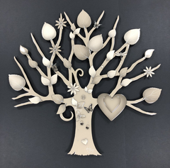 Having begun her career indulging in strong abstract pieces, dripping with colour and energy – her now signature move towards 3D elements began in 2006. The handmade elements that include glass, diamond dust, Swarovski crystals and finished by the artist herself in resin have become a much-loved fixture within her work.