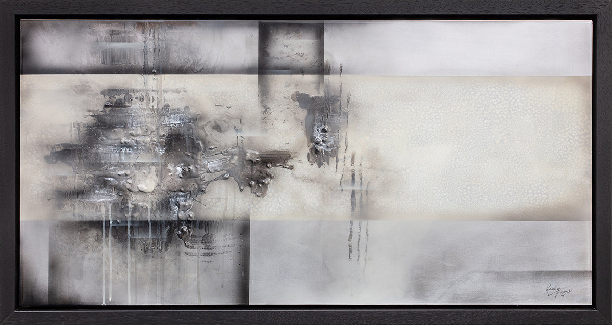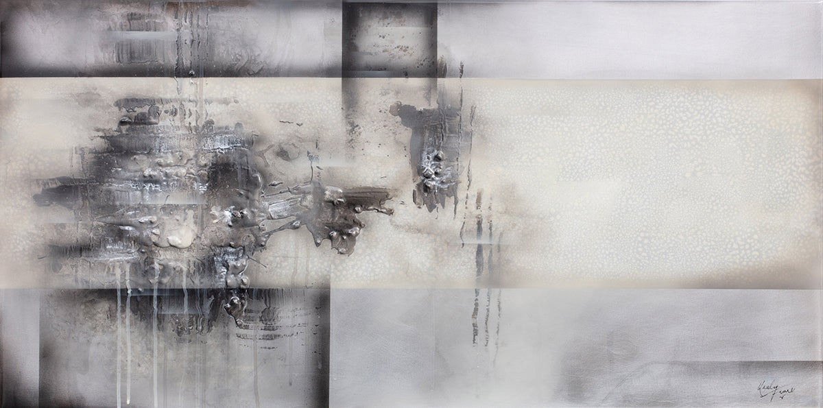 Having begun her career indulging in strong abstract pieces, dripping with colour and energy – her now signature move towards 3D elements began in 2006. The handmade elements that include glass, diamond dust, Swarovski crystals and finished by the artist herself in resin have become a much-loved fixture within her work.