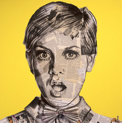 Chess is a mixed media artist based in Salisbury, Wiltshire. Her work firmly roots the iconic figures that she paints in their context, incorporating original newspaper clippings from throughout their lives and legacies. The textual element of her work brings together the love of reading and writing that she explored through her English degree and Creative Writing Masters with her love of painting and creating. The finished pieces, as well as being detailed portraits, have the added dimension of the stories that are attached to them.
